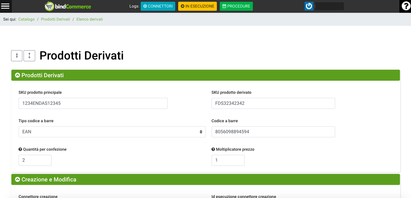 La configurazione per la gestione e creazione dei prodotti derivati, può essere eseguita in autonomia seguendo le istruzioni disponibili nell'apposita guida tecnica Prodotti derivati.