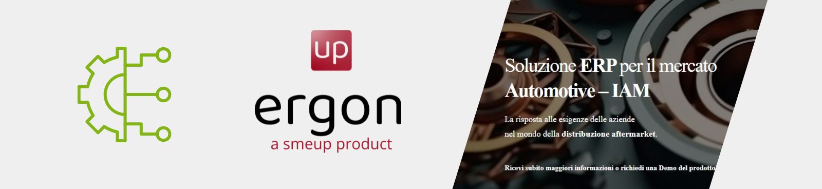 ERGON è la piattaforma ERP completa di smeup, modulare e integrata, progettata specificamente per le aziende della distribuzione aftermarket automotive e truck che vogliono ottimizzare i processi, migliorare le performance e mantenere il pieno controllo del business.