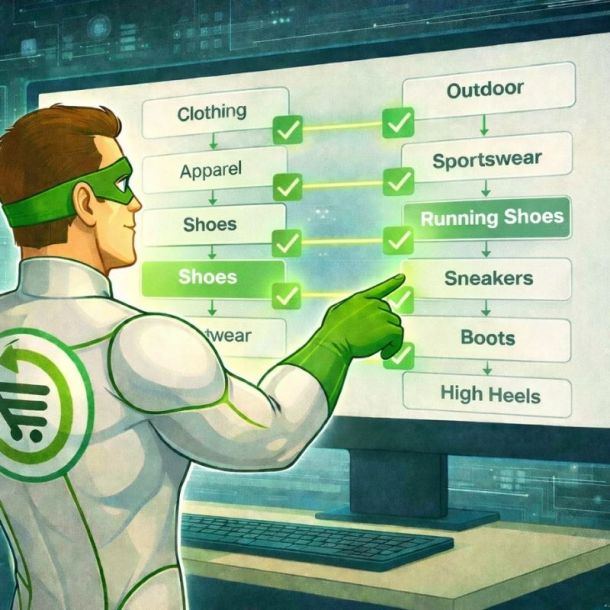 Grazie al connettore di “ricategorizzazione massiva” è inoltre possibile assegnare (o disassegnare) ai prodotti nuove categorie sulla base di altre caratteristiche note per il prodotto (es. parole contenute nel titolo, valore di attributi, assegnazione ad altre categorie).