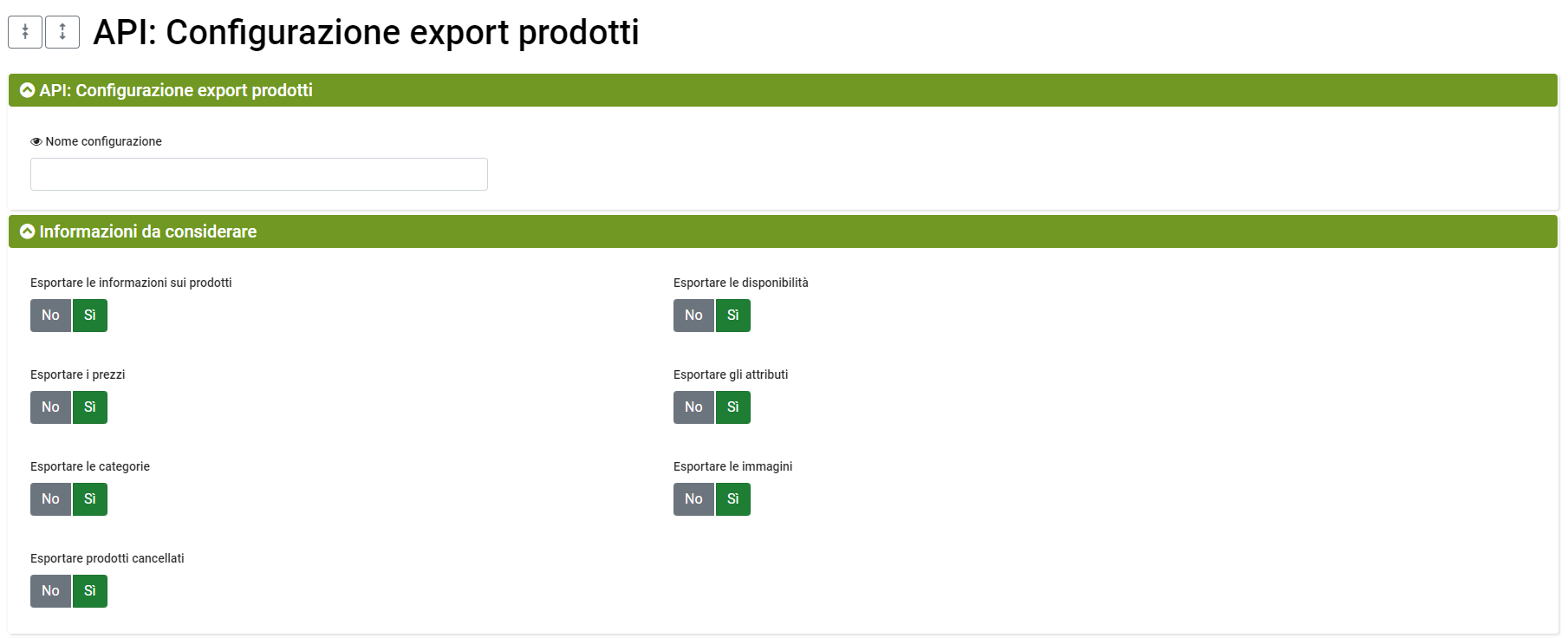 La configurazione API deve essere poi utilizzata in un connettore di tipo API [export prodotti].