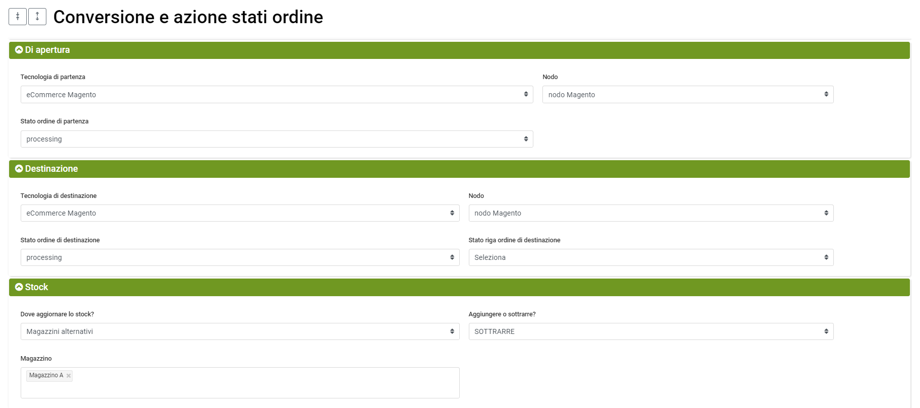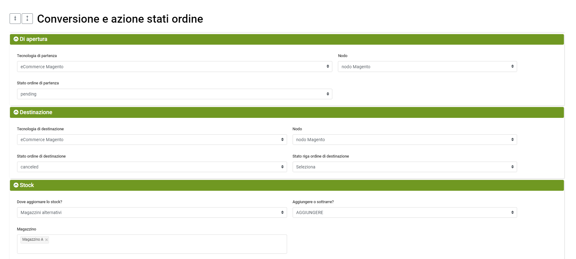 Nota bene: occorre creare una conversione per ogni stato ordine che deve agire sullo stock dei prodotti.