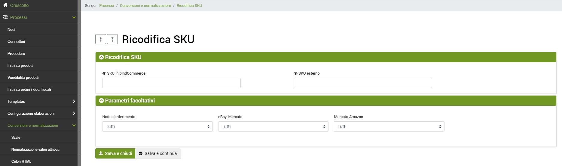 Processi >> Conversioni e normalizzazioni >> Ricodifica SKU