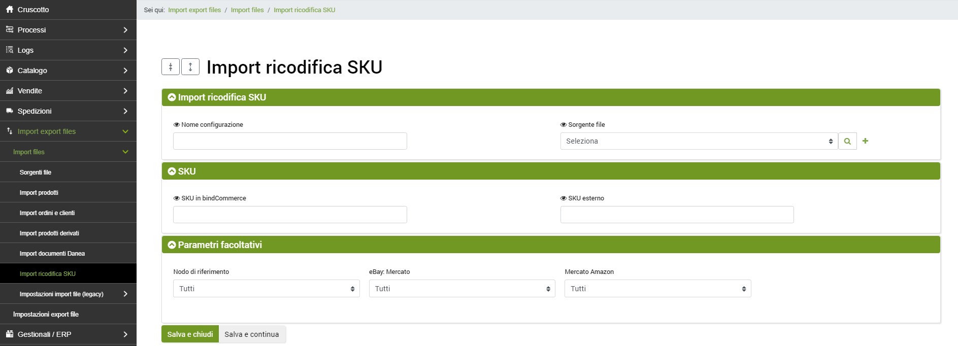Import export files >> Import files >> Import ricodifica SKU