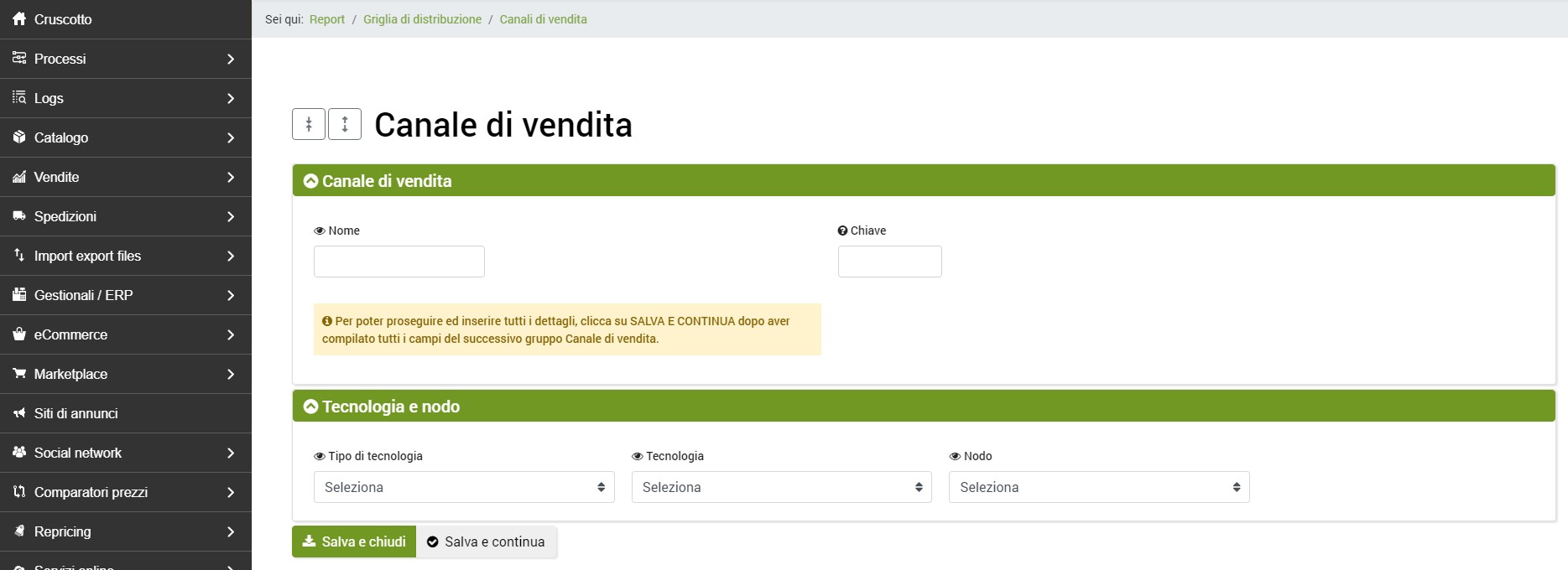 Occorrerà quindi creare un nuovo record per ogni canale di vendita interessato.