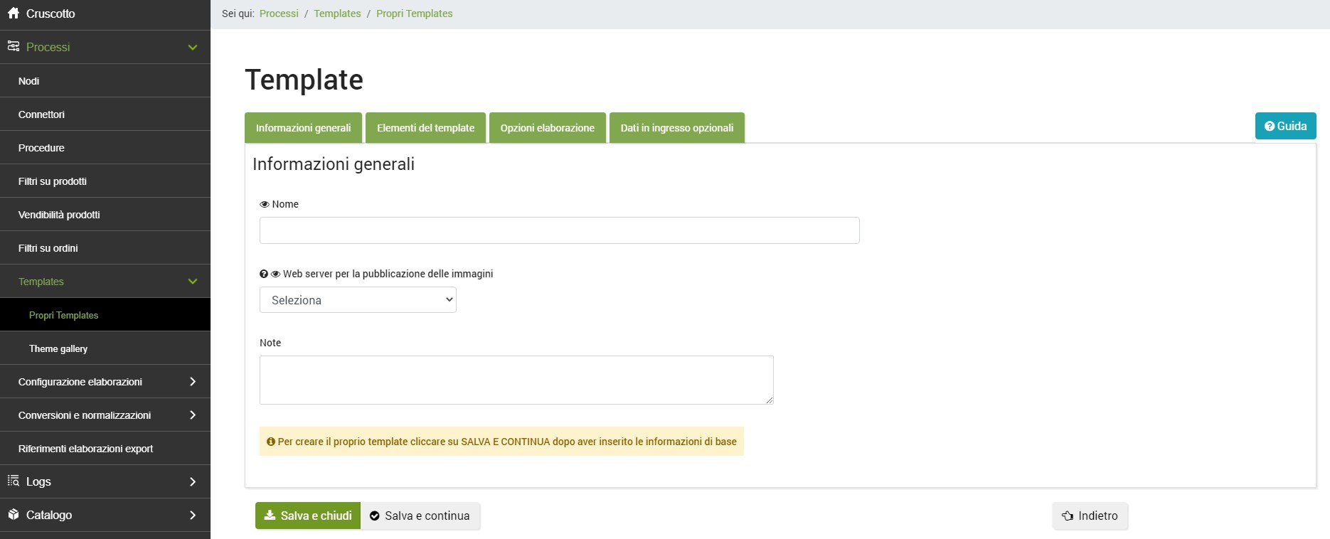 Prima di creare il template è necessario aver già creato l'alternativa di destinazione e il nodo web server (se è previsto l'uso di immagini).