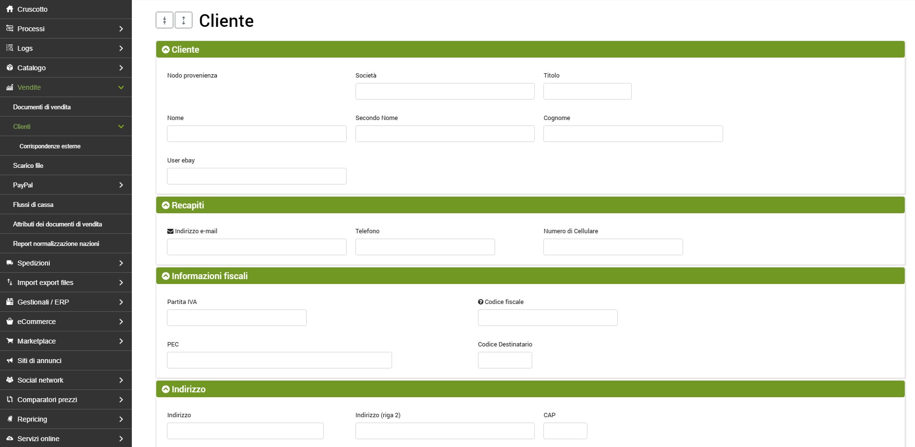 Per ogni vendita effettuata e scaricata su bindCommerce viene creato un record cliente nella tabella, raggiungibile dal menù