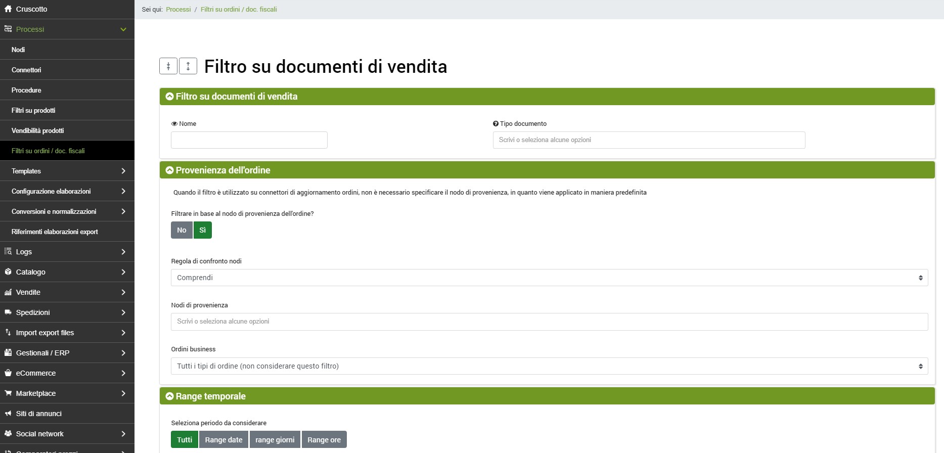 Processi >> Filtri su ordini