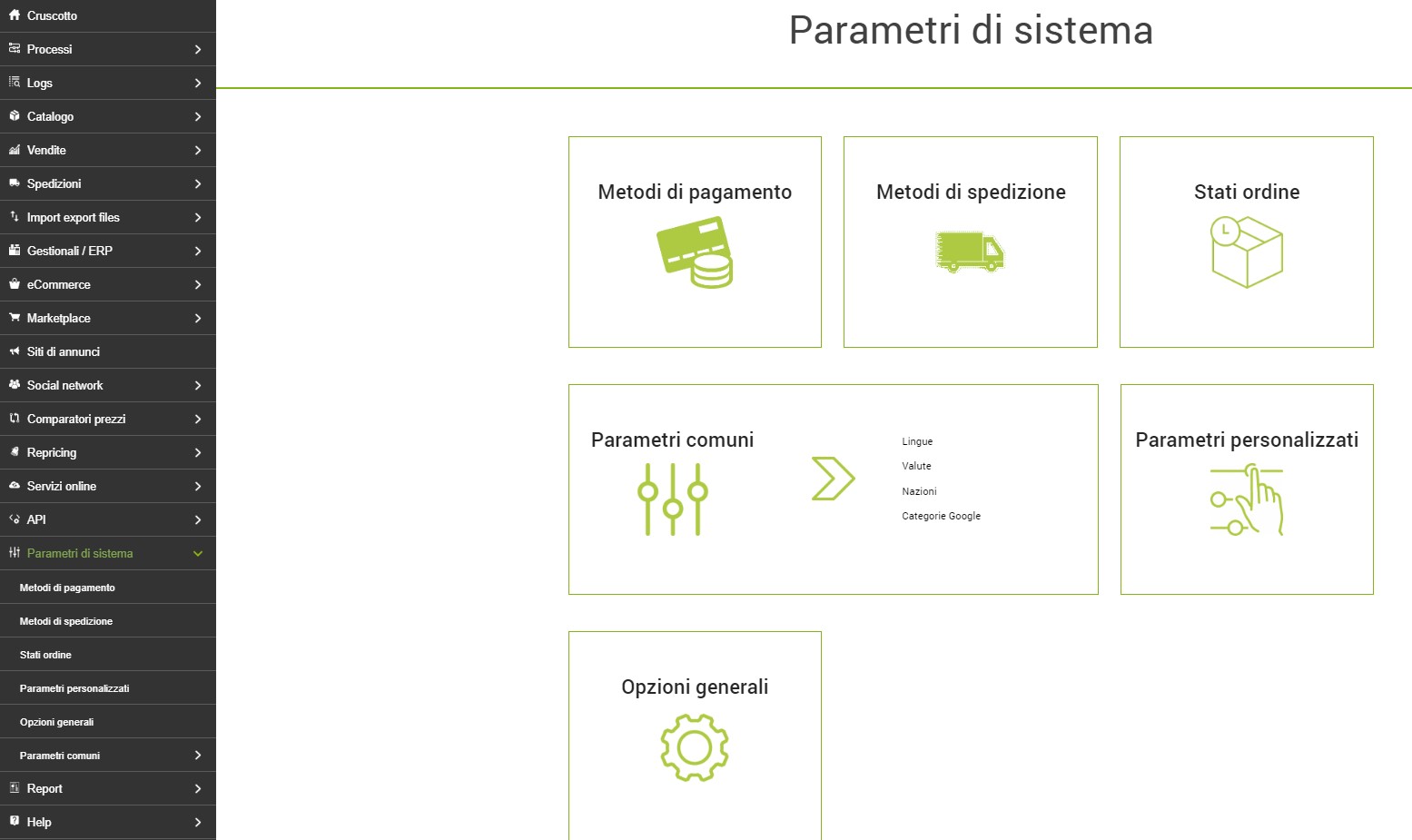 Parametri di sistema >> Metodi di spedizione