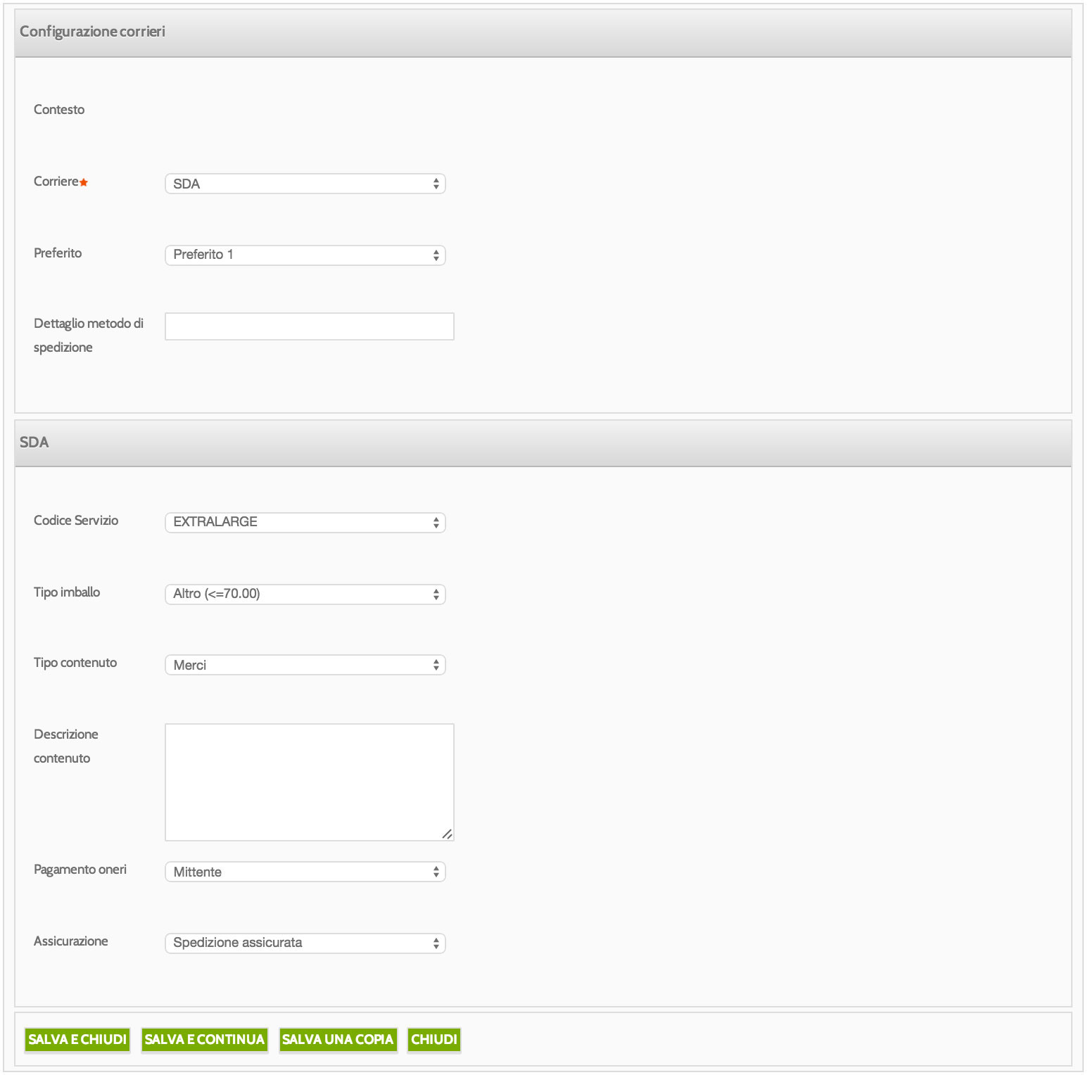 Configurazione corrieri