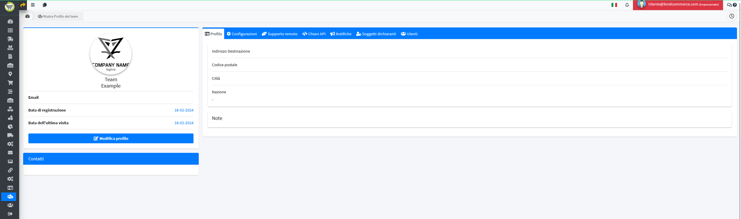 - Supporto remoto: se attivato, abilita l'accesso dello staff di supporto della piattaforma alla gestione del tuo team