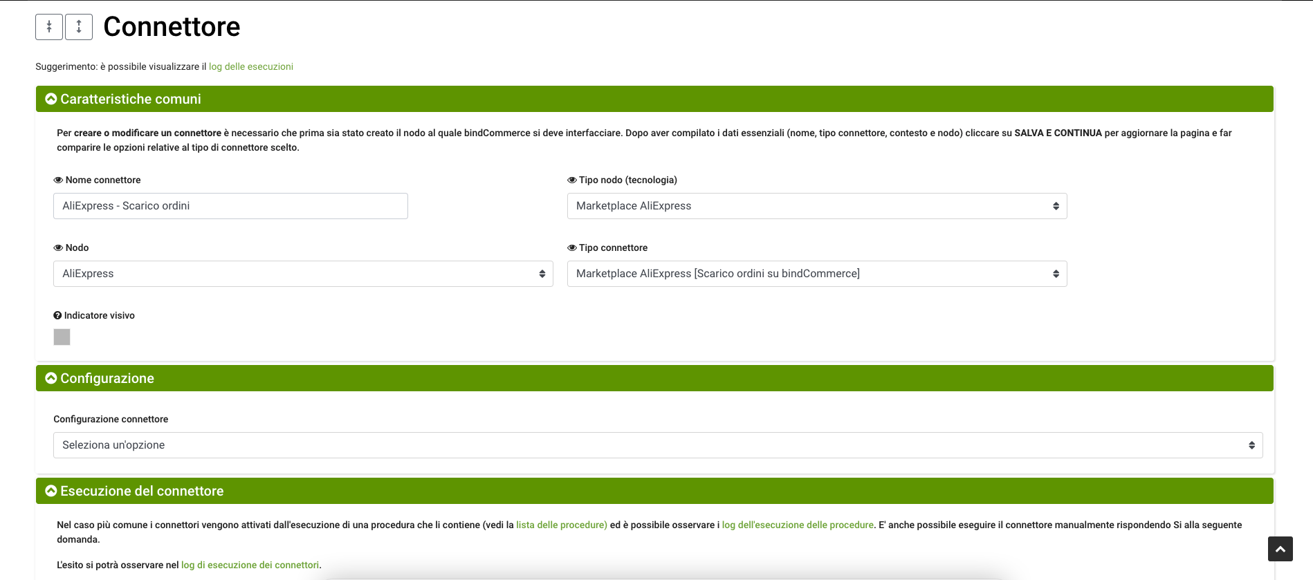- Tipo connettore: Marketplace AliExpress [Scarico ordini su bindCommerce]
