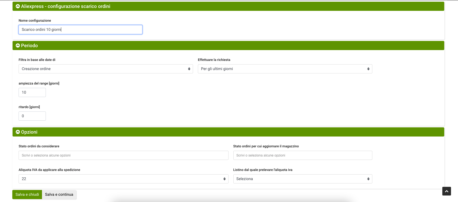 Marketplace >> AliExpress >> Configurazione scarico ordini