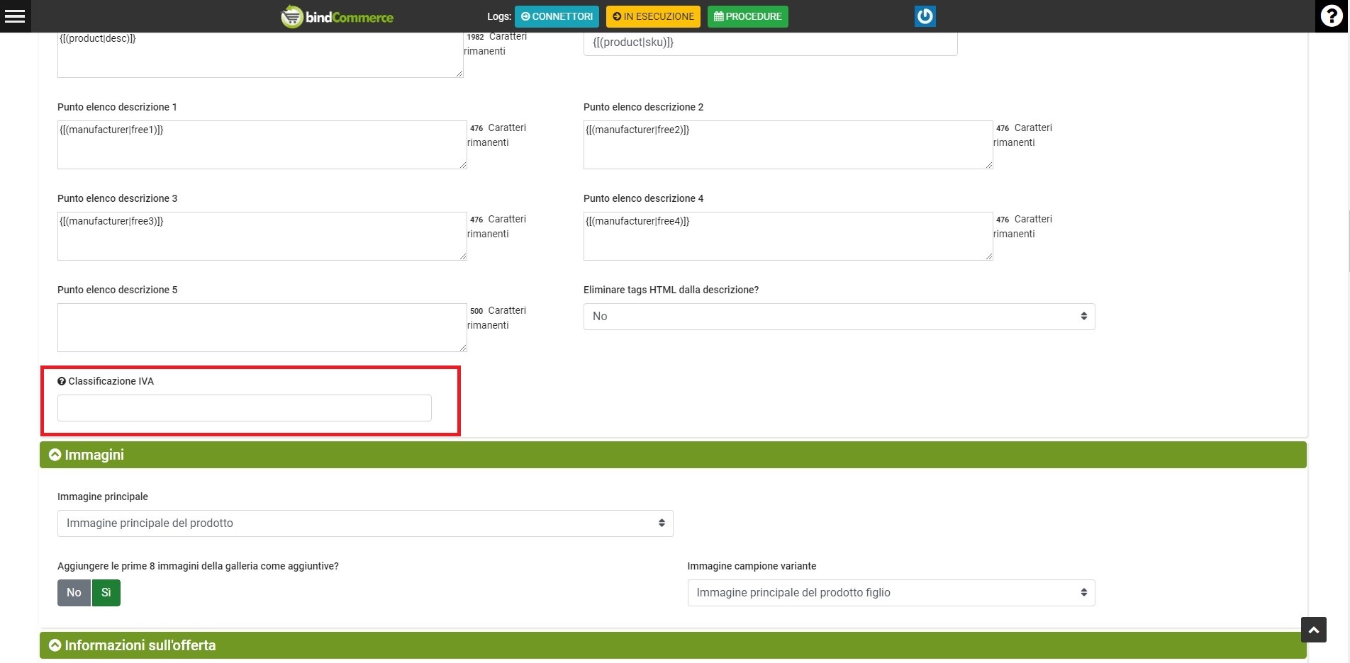 Dopo aver generato internamente l’offerta, per poter inviare correttamente il dato al marketplace, occorre recarsi all’interno della configurazione di azioni su prodotti / offerte Amazon ed indicare l’invio del campo “Classificazione IVA (Product tax code) [business]”