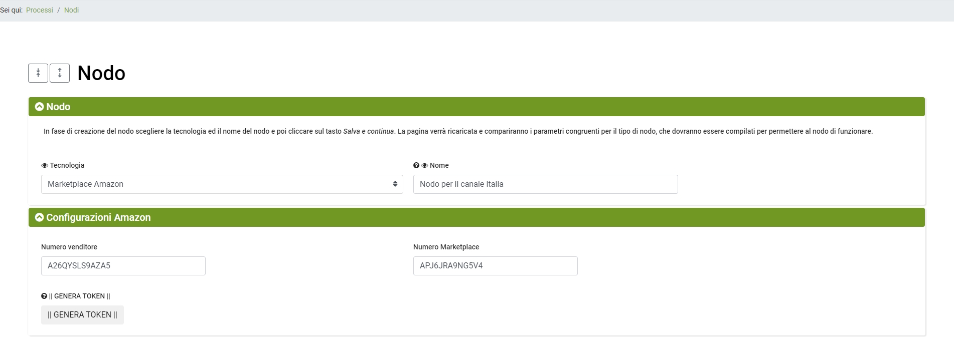 Per creare un nodo Amazon selezionare dal menu bindCommerce: