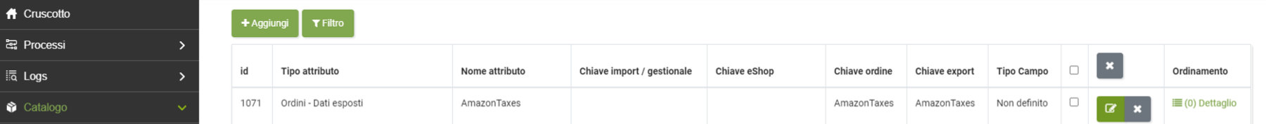 Lo scarico ordini dai mercati Amazon USA, Canada, Brasile e Messico prevede il calcolo dei dazi sul totale dell'ordine. Per consentire di visualizzare gli importi degli ordini al netto dei dazi, trattenuti direttamente da Amazon in fase di acquisto da parte del cliente, è necessario impostare su bindCommerce un apposito attributo, denominato AmazonTaxes.