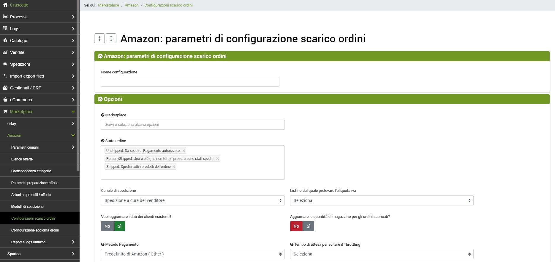 Marketplace >> Amazon >> Configurazione scarico ordini