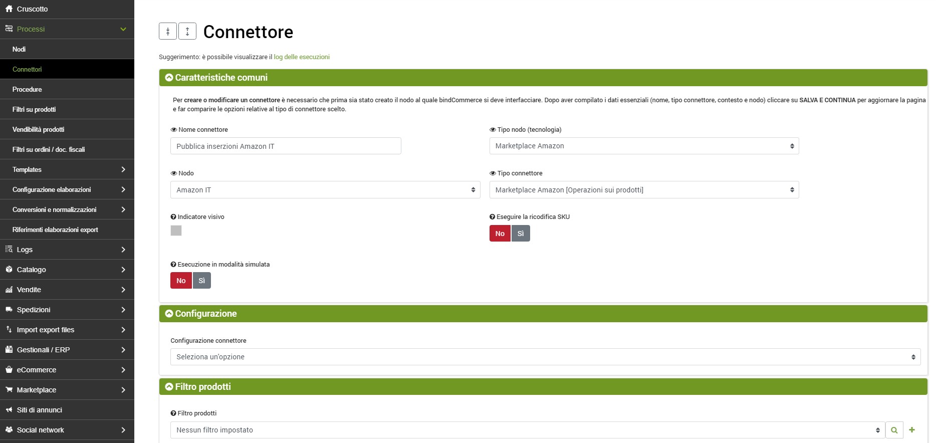 Finito il resto delle configurazioni non rimane che preparare il connettore che si occuperà dell'invio delle offerte ad Amazon.