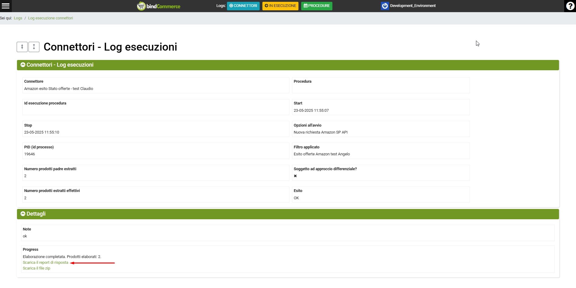 Connettore per lo scarico dell'esito della pubblicazione di prodotti/offerte su Amazon