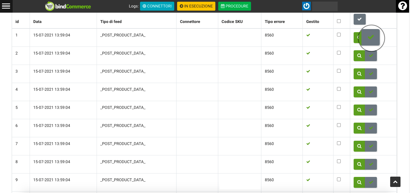 Dopo aver selezionato uno o più errori, è possibile segnalarli come gestiti cliccando sull’apposita spunta verde.