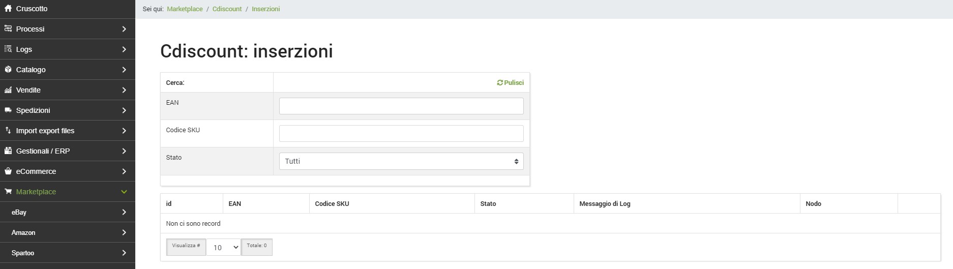 Le inserzioni Cdiscount generate su bindCommerce e inviate al marketplace saranno disponibili all’interno dell’apposita sezione: