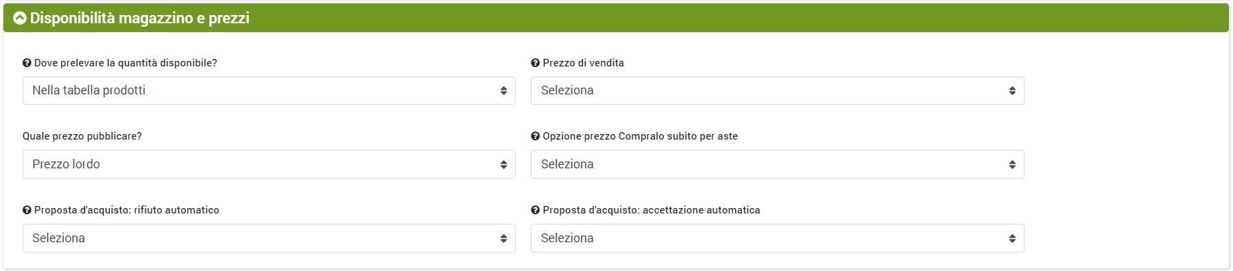 Nel campo Dove prelevare la quantità disponibile per i prodotti? - è possibile scegliere fra le seguenti possibilità: