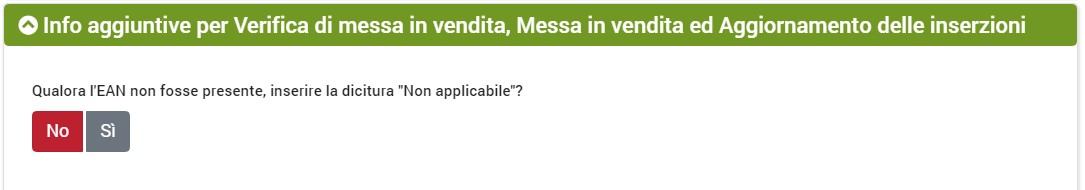 Campo Qualora l'EAN non fosse presente, inserire la dicitura "Non applicabile"?
