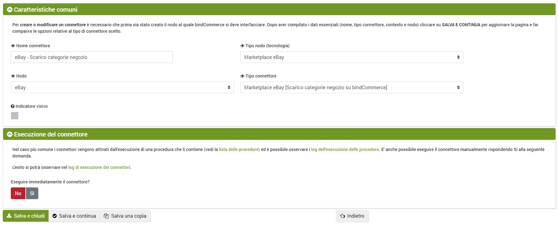 Una volta create le categorie del negozio, sarà necessario scaricarle in bindCommerce per mezzo di un apposito connettore.