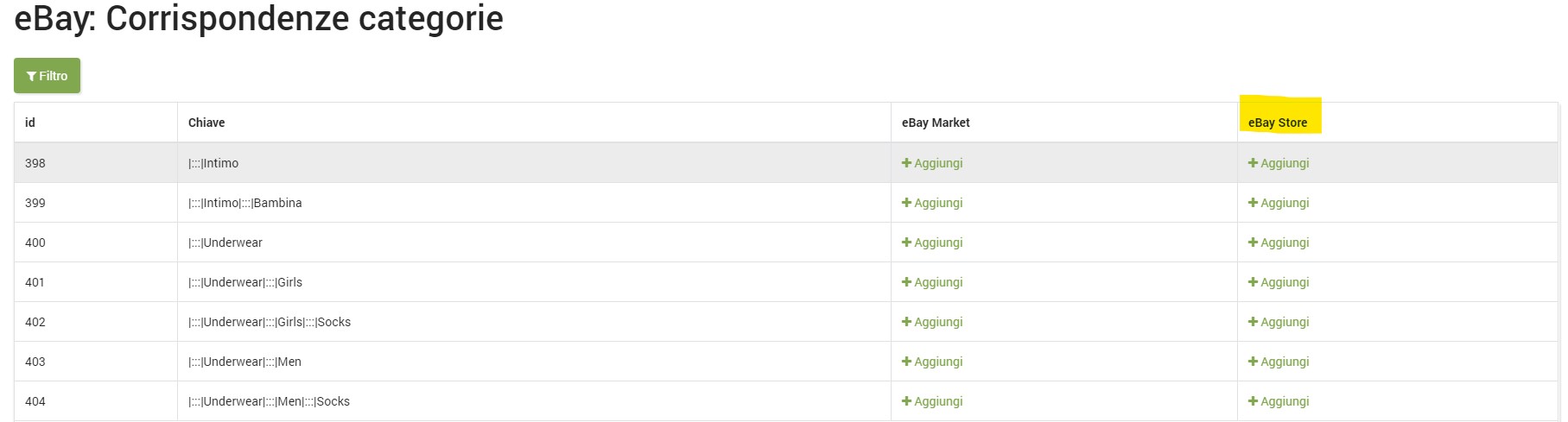 Abbinare le categorie del negozio eBay alle categorie dei prodotti