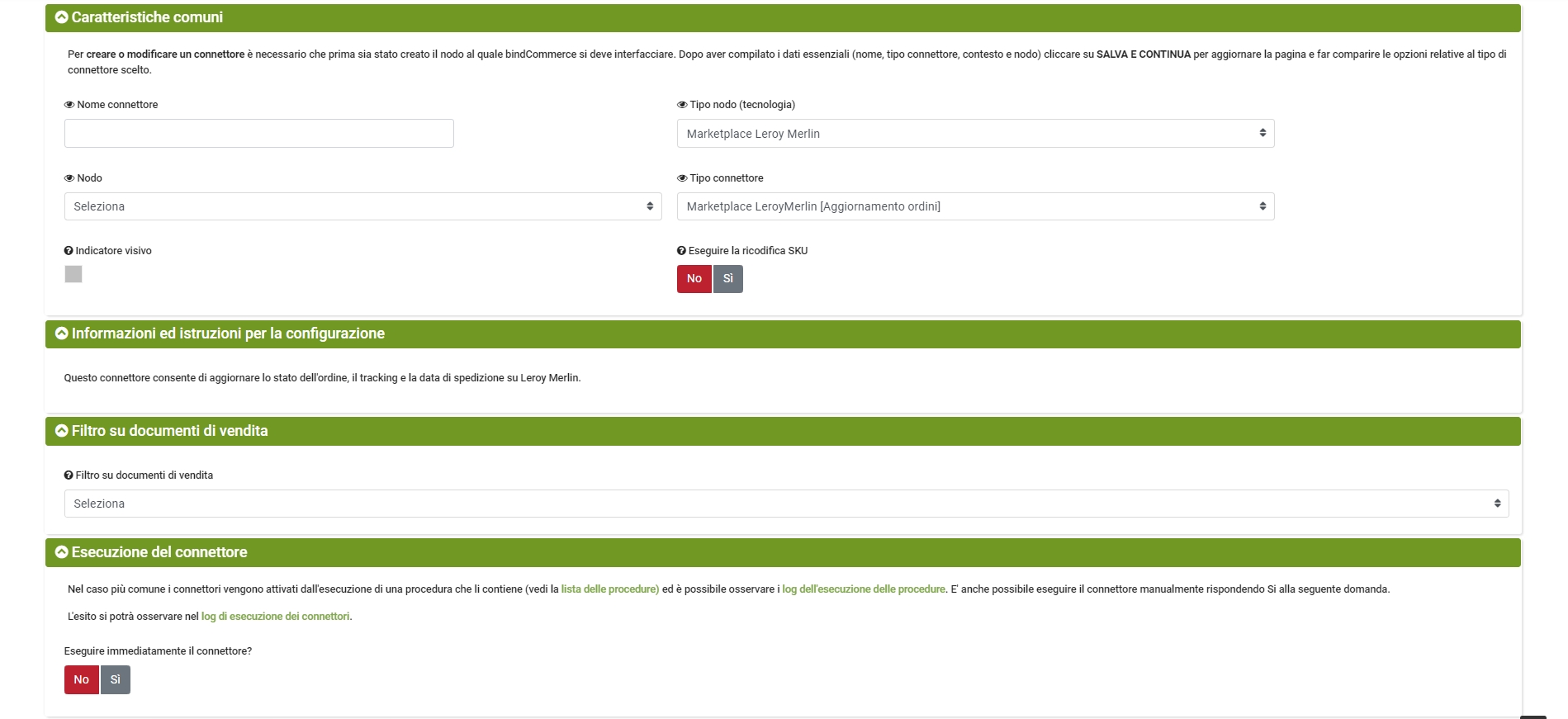 • Tipo connettore: Marketplace Leroy Merlin [Aggiornamento ordini]