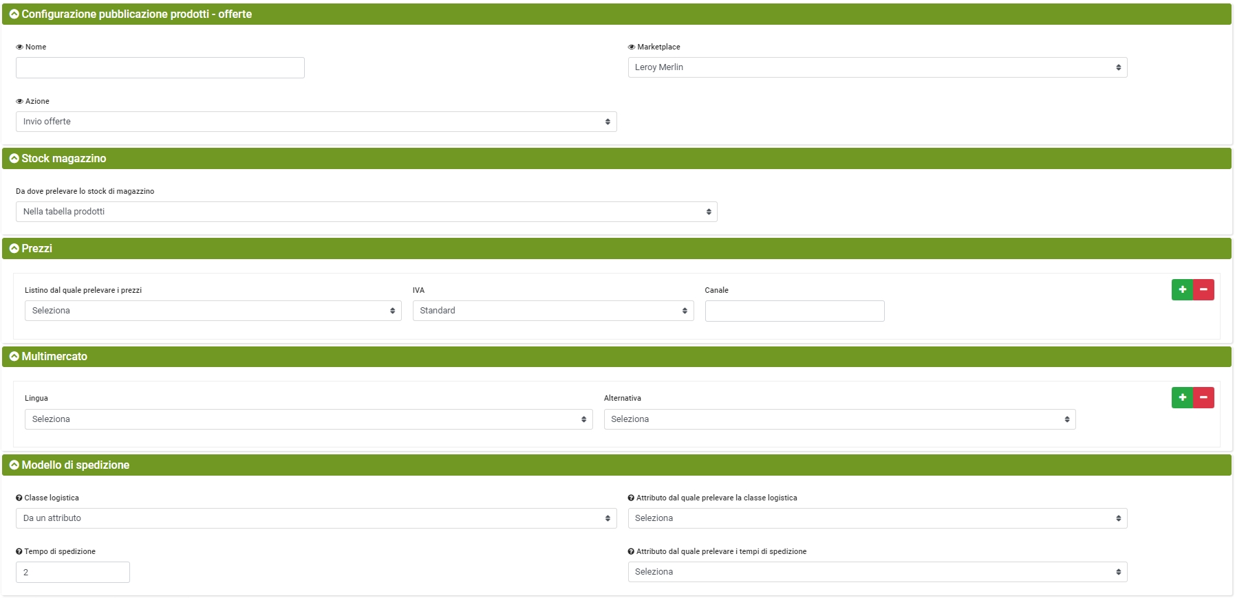 Per inviare le offerte in Leroy Merlin è necessario creare un connettore di export prodotti opportunamente configurato.