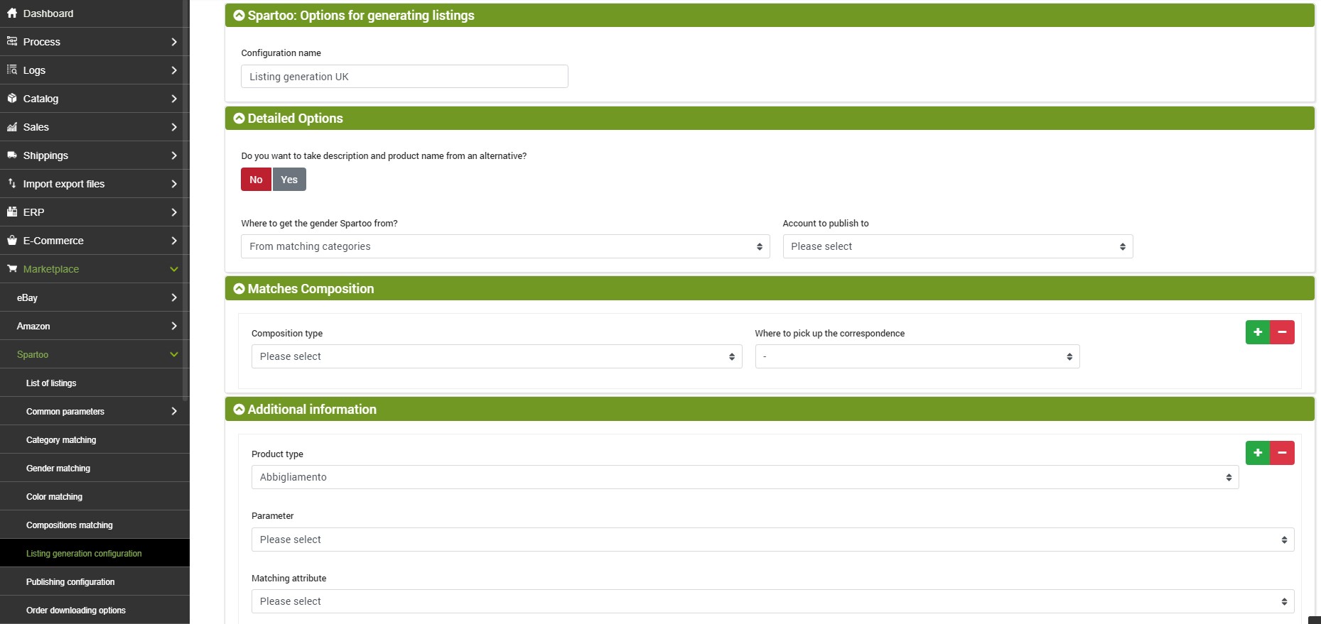 Marketplace --> Spartoo --> Listing generation configuration