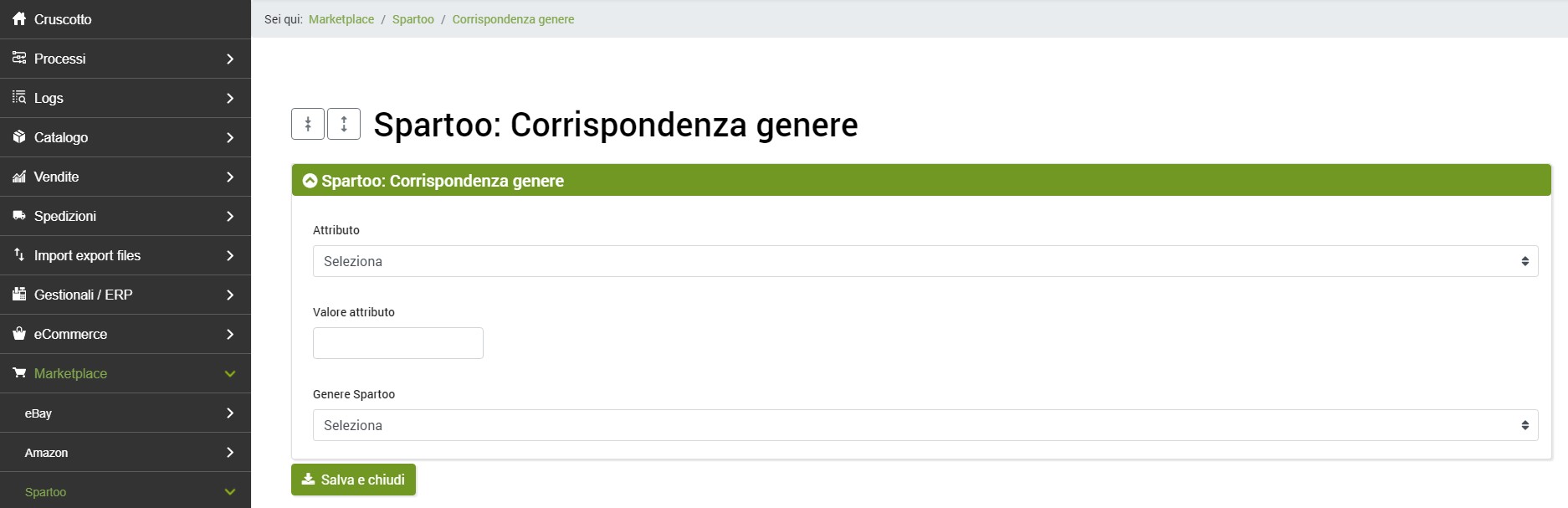 - Genere Spartoo: qui si indica la corrispondenza del nostro valore con quello standard presente in Spartoo