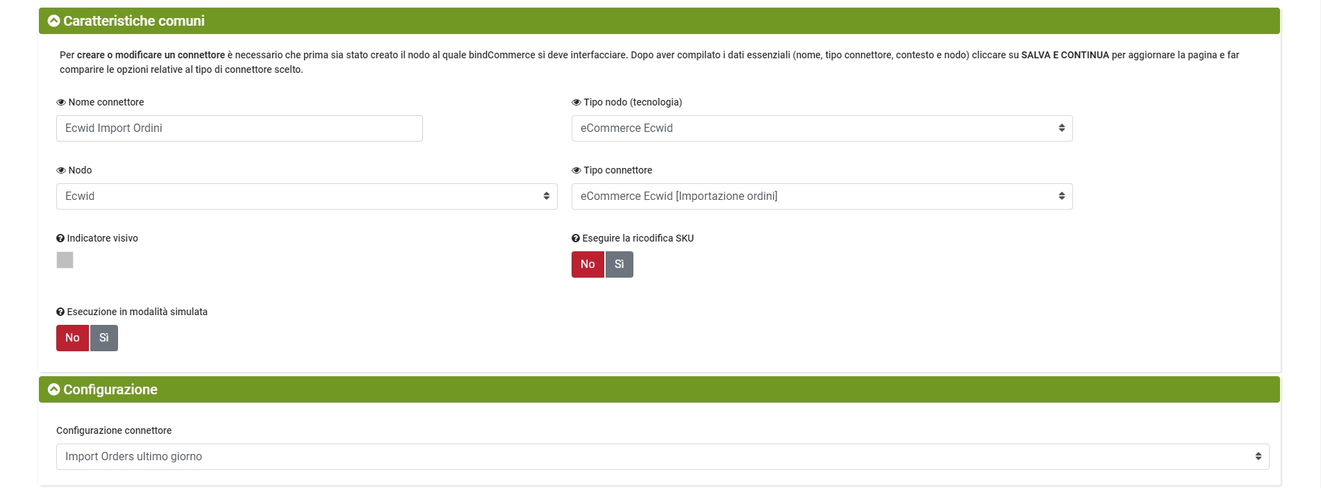 Per importare gli ordini da Ecwid by Lightspeed sono necessarie le seguenti configurazioni su bindCommerce: