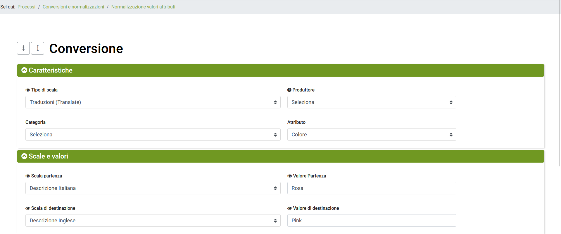 - Scala di partenza: “Descrizione Italiana” con valore “Rosa”.