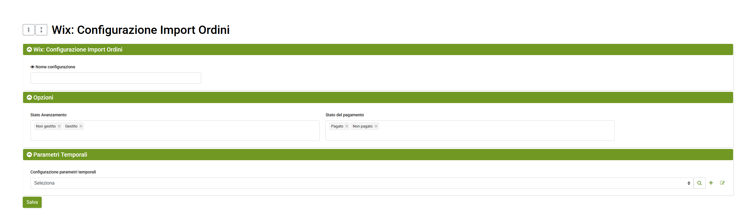 • Nome connettore: inserire un nome identificativo, ad esempio “Wix Import Ordini”
