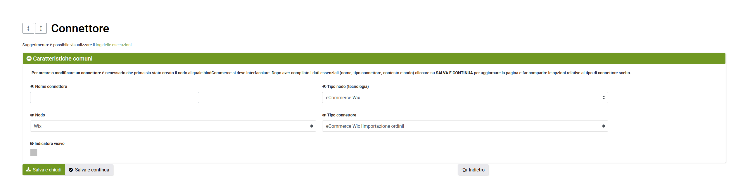 Per importare gli ordini da Wix sono necessarie le seguenti configurazioni su bindCommerce: