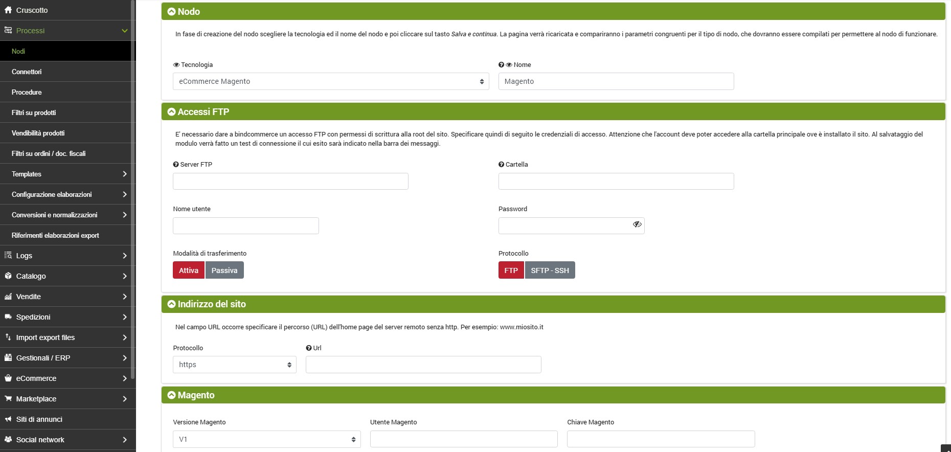 L'installazione dei nodi di tipo Magento permette di mettere in comunicazione la piattaforma di integrazione bindCommerce con i negozi online realizzati in ambiente Magento.