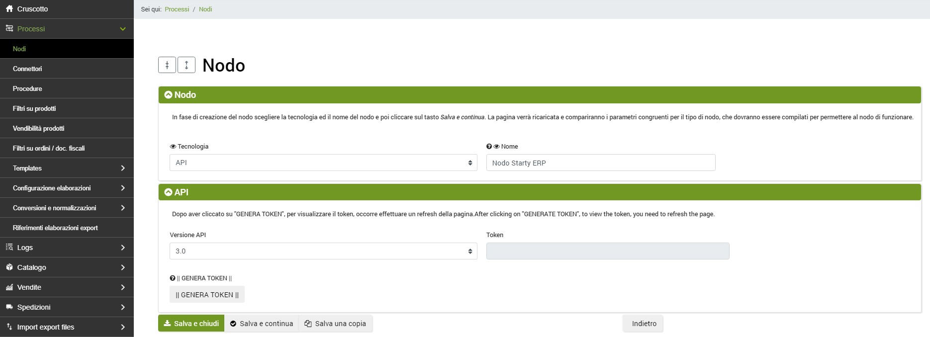 e incollare il token nell’apposito campo. Il nodo adesso è installato. Per ulteriori dettagli sulla configurazione dal pannello di controllo di Starty ERP rimandiamo alla guida tecnica messa a disposizione dal team del gestionale.