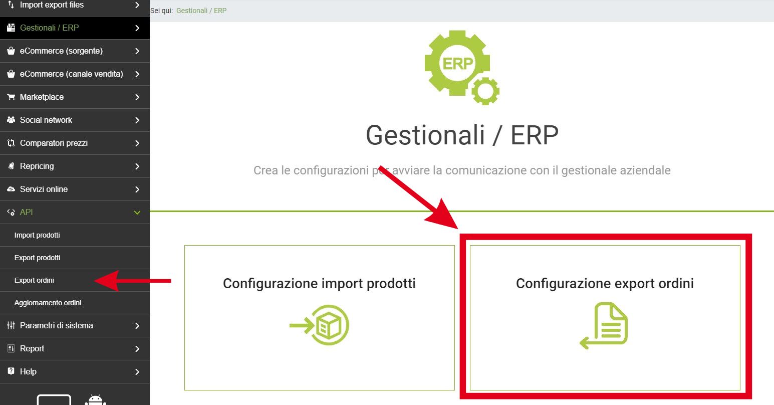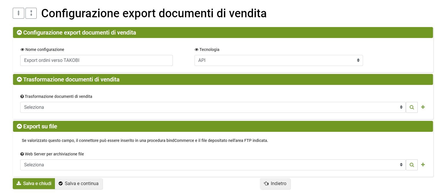 - Nome configurazione: un scegliere il nome che si ritiene più adeguato per distinguere il nodo (ad esempio Export ordini verso TAKOBI)