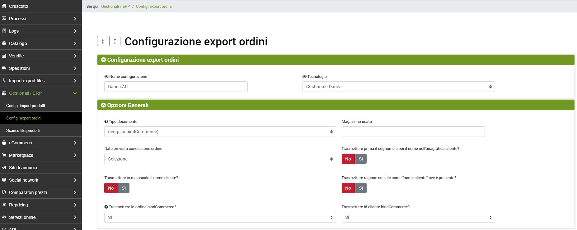 Dopo aver fatto questo è necessario andare a parametrizzare la funzionalità di scarico Ordini (Gestionali --> Config. export ordini)