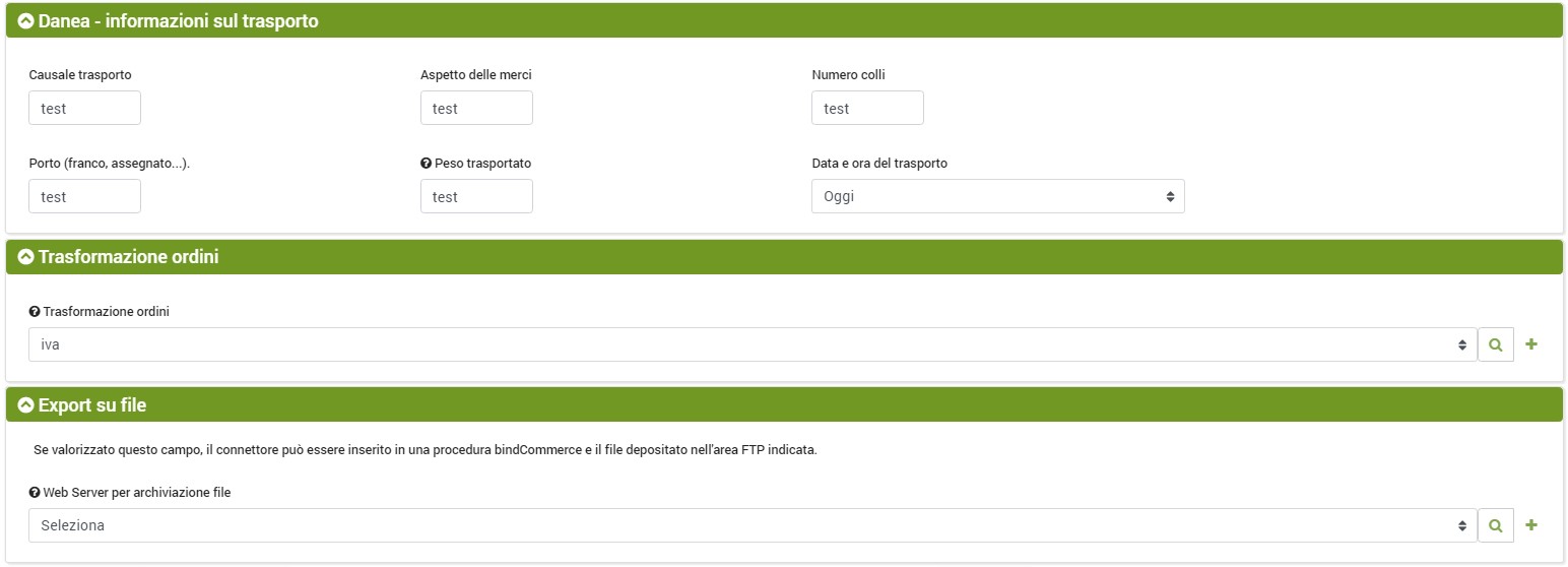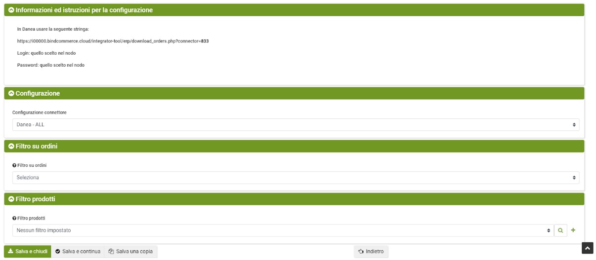 I parametri da inserire in questa schermata verranno impostati sulla base della configurazione del nodo e del connettore effettuata su bindCommerce.