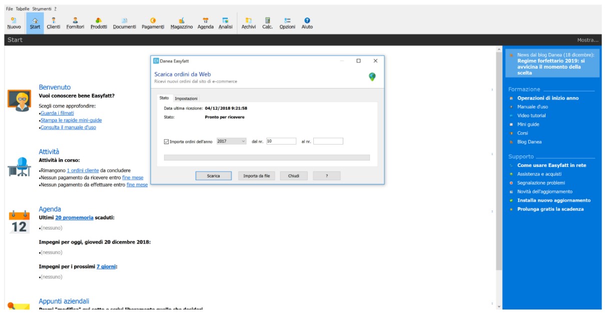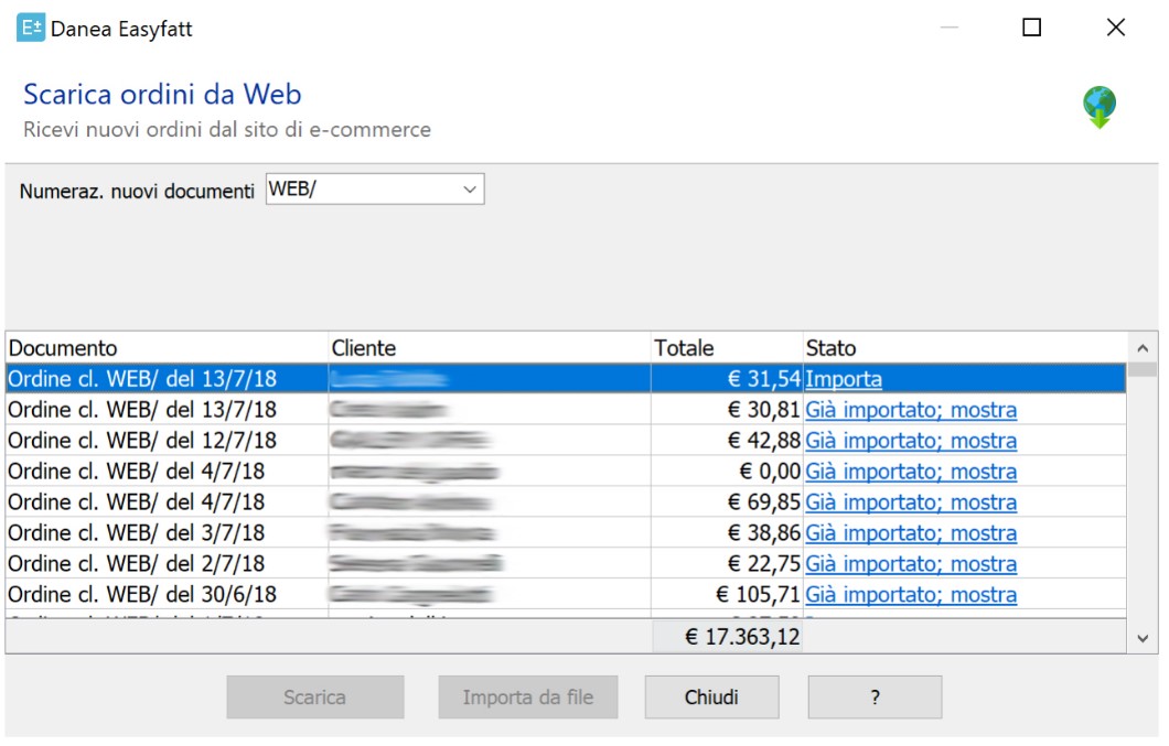 Dopo aver effettuato lo scarico degli ordini disponibili, Danea riconoscerà quali di questi sono già stati importati, e quali invece sono ancora da importare, senza quindi alcun pericolo di duplicazione.